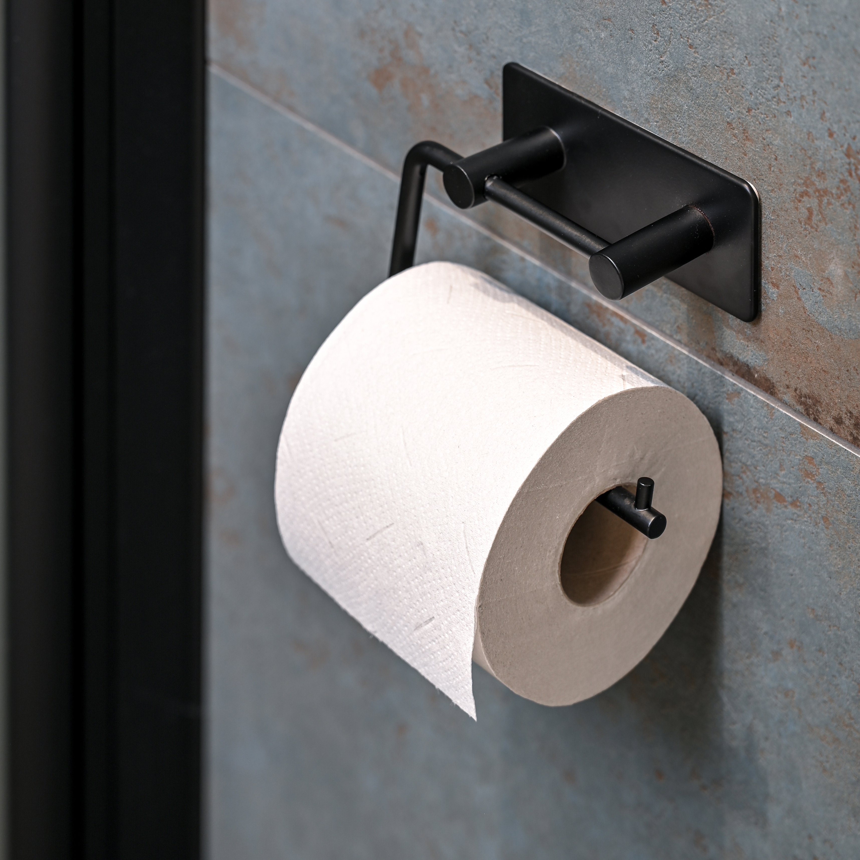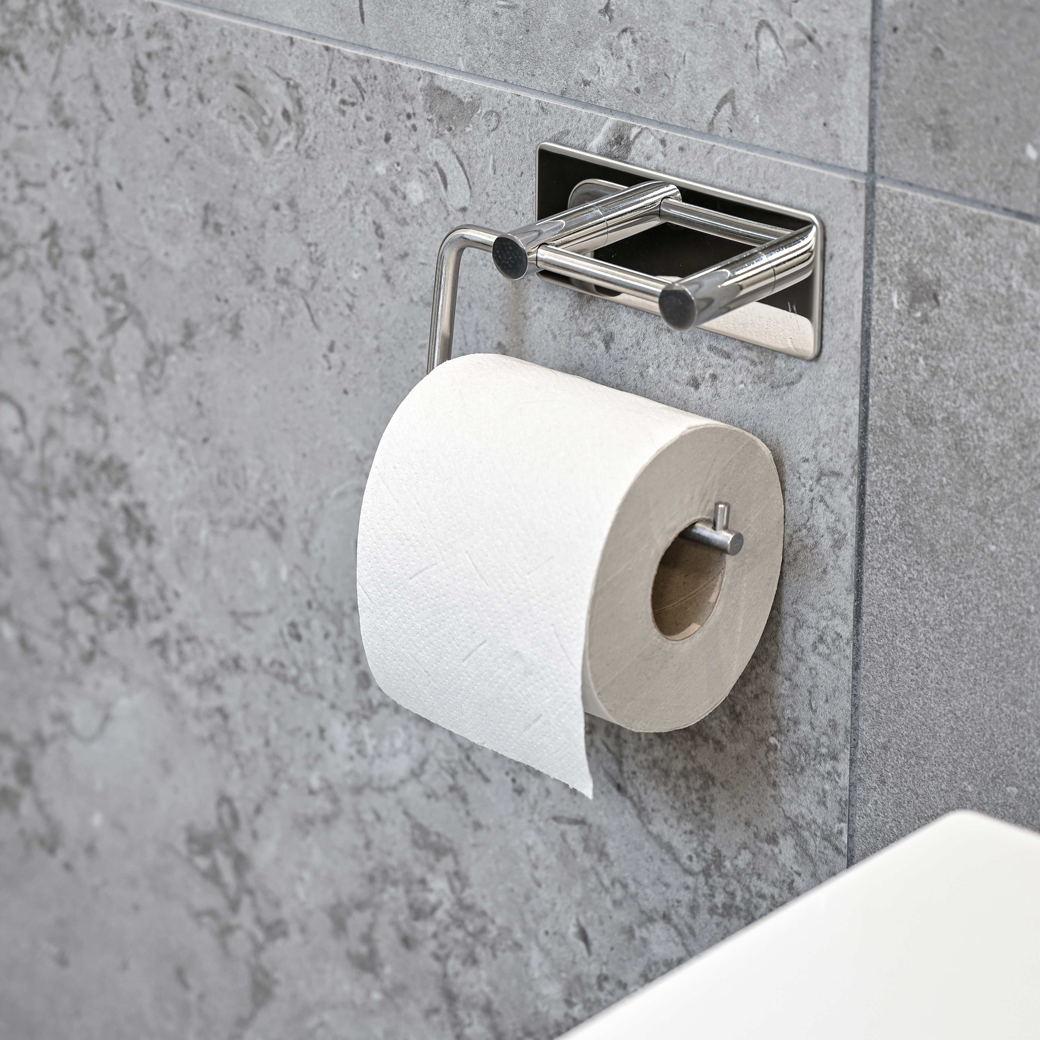 En modern toalettpappershållare som finns i flera olika utföranden och färger. Toalettpappershållarna ingår i badrumsserien Nantes som innehåller ett flertal andra produkter. Monteras med självhäftande tejp (3M - sitter förmonterad på produkterna).