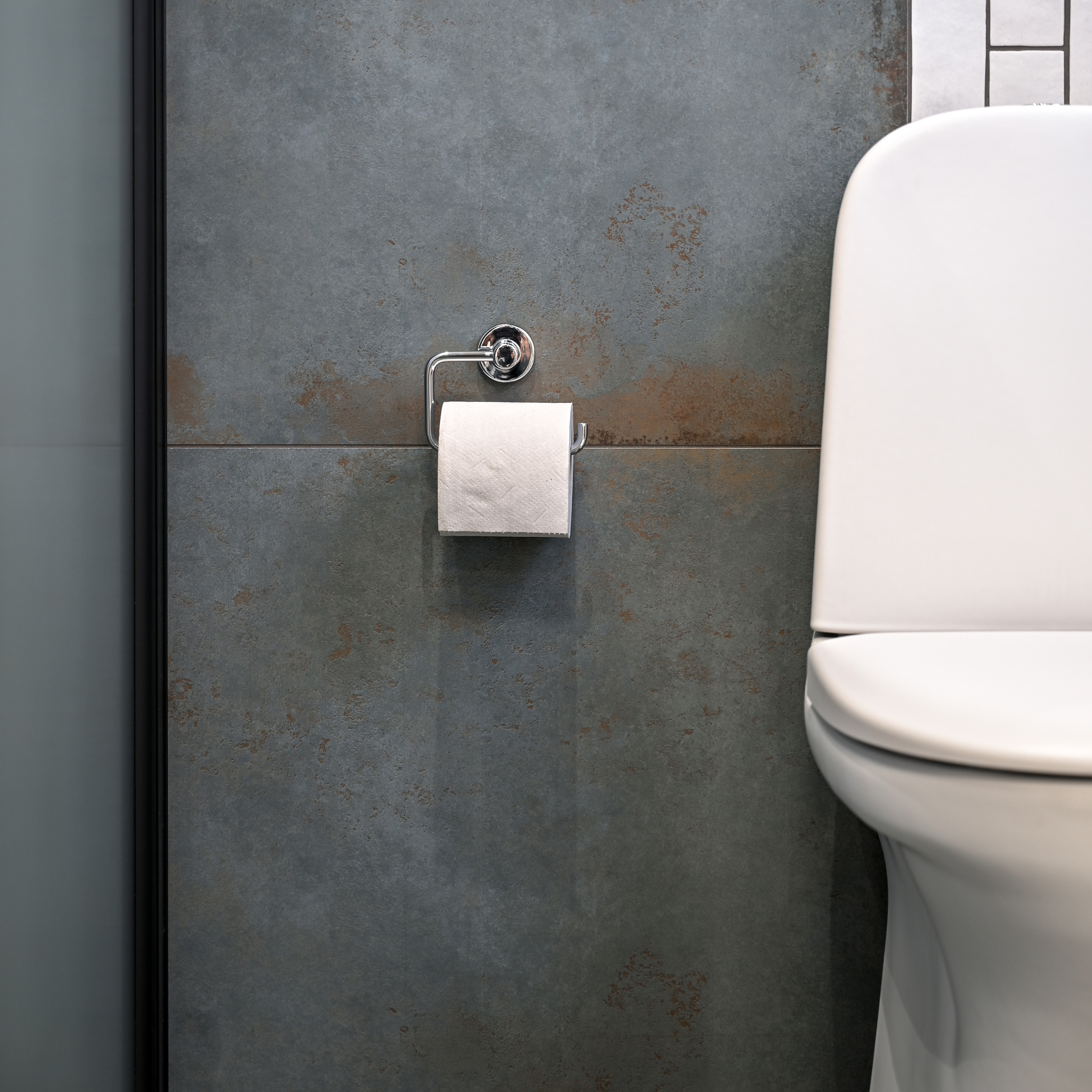 En klassisk toalettpappershållare som finns i flera olika utföranden och färger. Toalettpappershållarna ingår i badrumsserien Toulon som innehåller ett flertal andra produkter. Monteras med skruv. Kan även limmas.