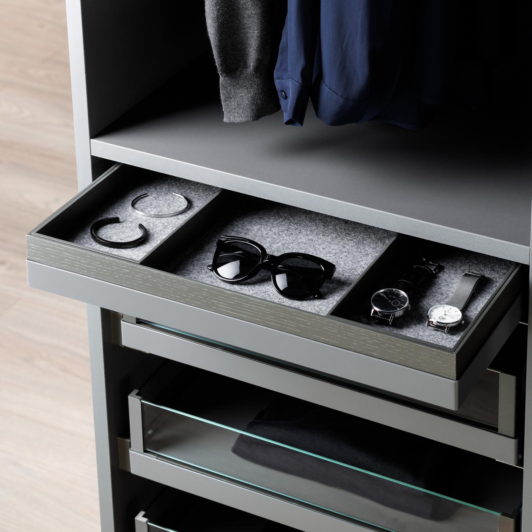 Lådan har fullutdrag och mjukstängning. Finns för skåpbredderna 400, 500, 600, 800 och 900. Passar skåpsida 16 mm. Monteras enkelt i 3 mm eller 5 mm hål. Maxvikt 20 kg.