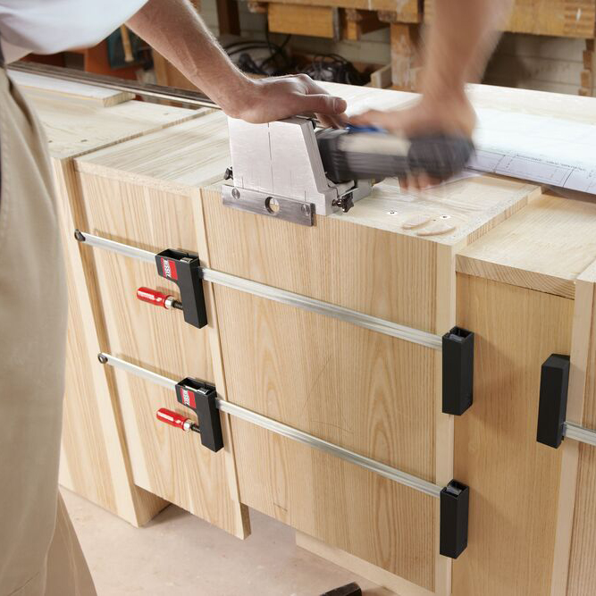 BESSEY-hålprofilskenan från vårt eget drageri har optimerats speciellt för tvingar. Profilen utgör en tillförlitlig förstärkning mot torsionskrafter. Räfflingen förhindrar dessutom att tvingen glider av.Borttagbar ändsäkring