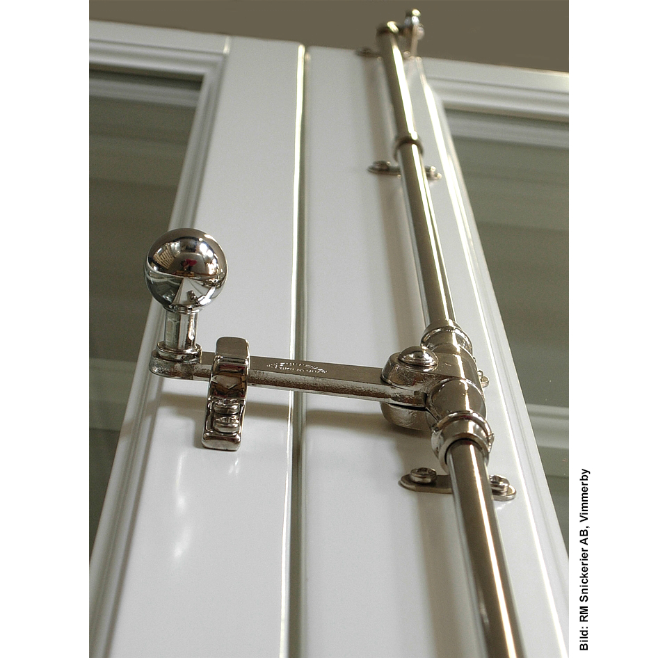Klassisk "stångspanjolett" av 1920-talsmodell i förnicklad mässing (MN) för utanpåliggande fönster och dörrar.
