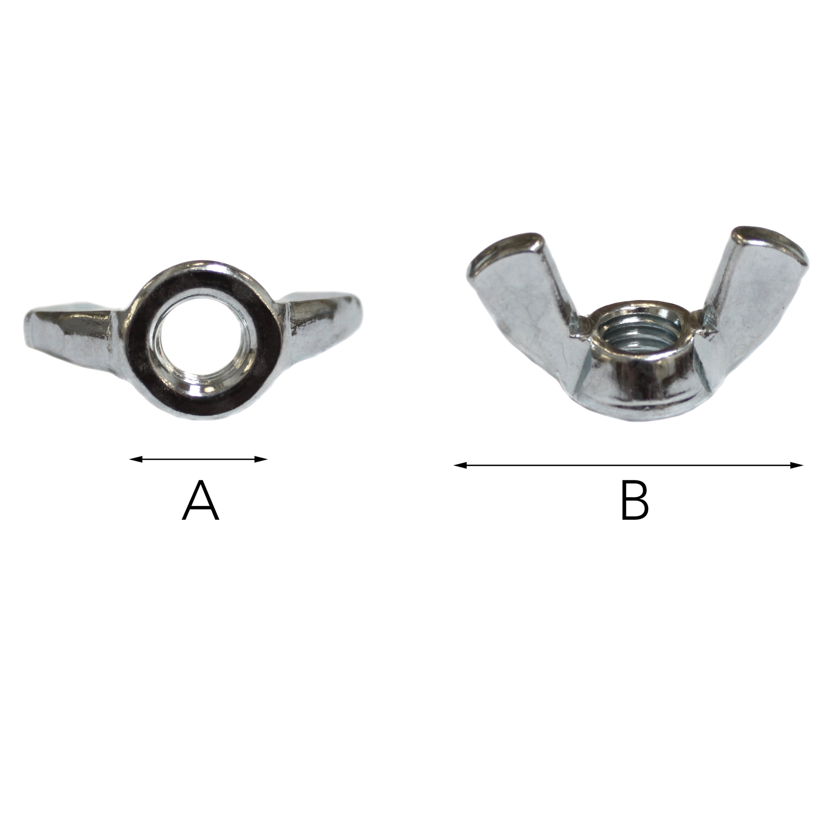 M4 - A: 10 mm, B: 21 mm M5 - A: 10 mm, B: 21 mm M6 - A: 12 mm, B: 26 mm M8 - A: 14 mm, B 30 mm